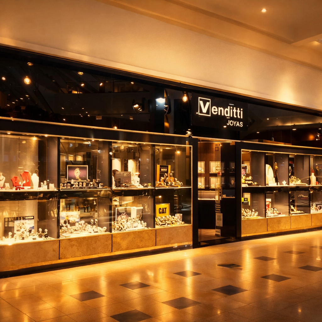 Los primeros pasos de Venditti Joyas se dieron en Castelar, continuando luego su crecimiento en Ramos Mejía, y consolidando su presencia con la apertura de un local dentro del Shopping Plaza Oeste, uno de los centros comerciales más importantes de la zona oeste.