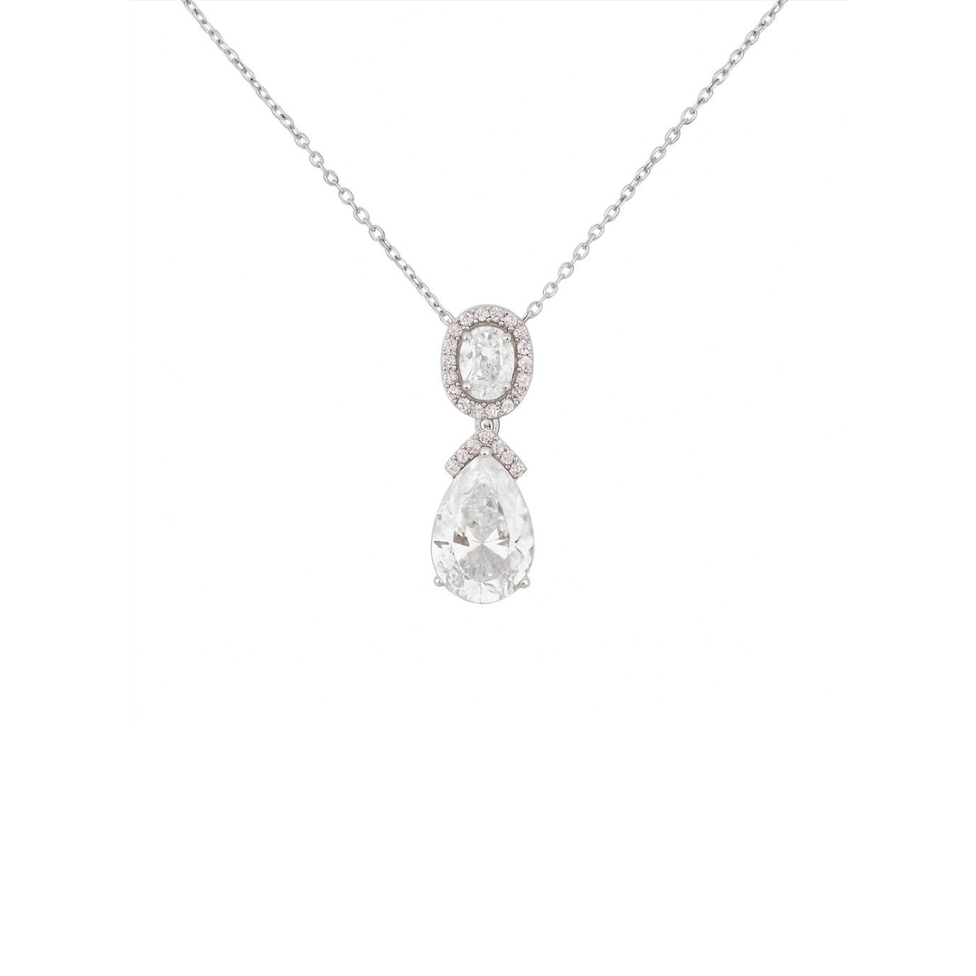 Gargantilla elaborada en plata ley 925 y presenta un diseño refinado de inspiración clásica. Su protagonista es una delicada piedra central en corte gota, acompañada por un engarce superior oval con cubic zirconia, que realza el brillo y aporta profundidad al diseño.