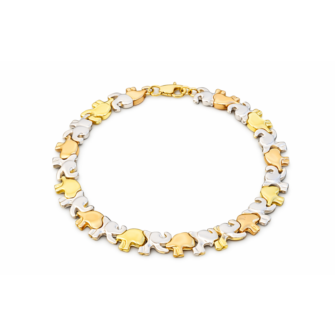 La Pulsera Familia Elefante es una joya con significado, diseñada para representar unión, protección y amor incondicional. Realizada en combinación de oro amarillo y oro blanco, presenta una delicada sucesión de elefantes entrelazados que simbolizan la fortaleza del vínculo familiar.